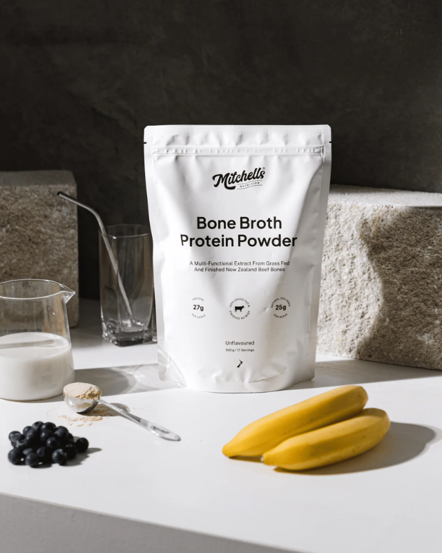 Bone Broth Protein Powder is a natural way to give your body all the support it needs to stay active. Every single gram of protein and collagen found in this powder is a natural outcome of the slow cooking process. We use a traditional drying technique to extracting the goodness from 100% grass fed New Zealand beef bone.