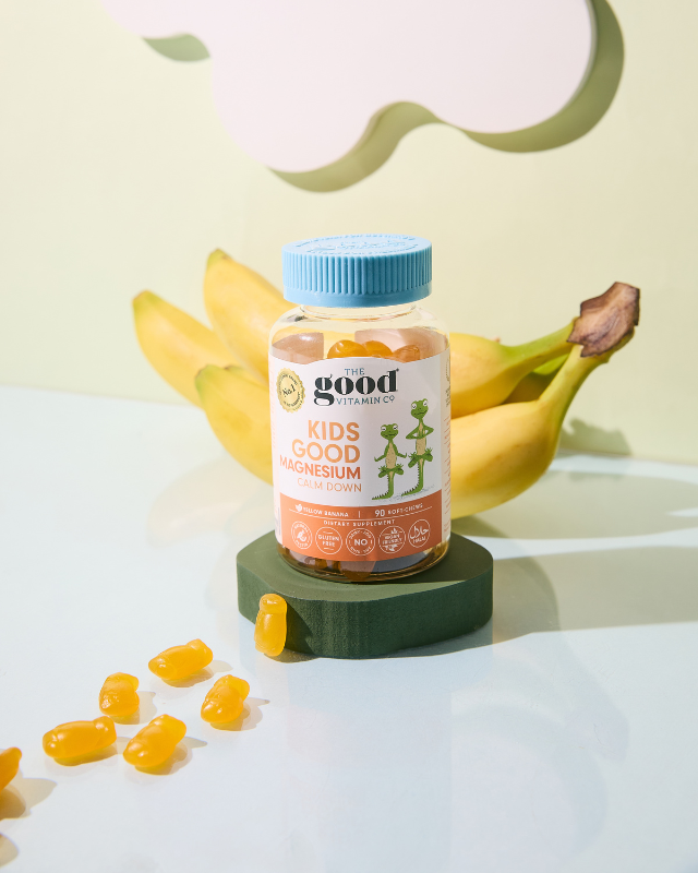 Kids Magnesium Calm Down Gummies - delightful chewables are expertly formulated to support your little ones during growth spurts, ease muscle tension, and promote a good night's sleep by helping to calm and relax their active minds and bodies. Give your children the gift of tranquility and strength with 100% yellow banana flavoured . As they drift off to a peaceful sleep and recover from their day's activities, you can rest assured they're well-nourished and supported for whatever tomorrow brings.
