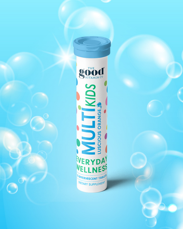 Kids Good Multi Effervescent Tablets, a delightful orange-flavored effervescent kids' multivitamin that delivers essential nutrients to support growing bodies. To use, simply drop one tablet in a glass of water and let your child enjoy the fizzy drink once a day.