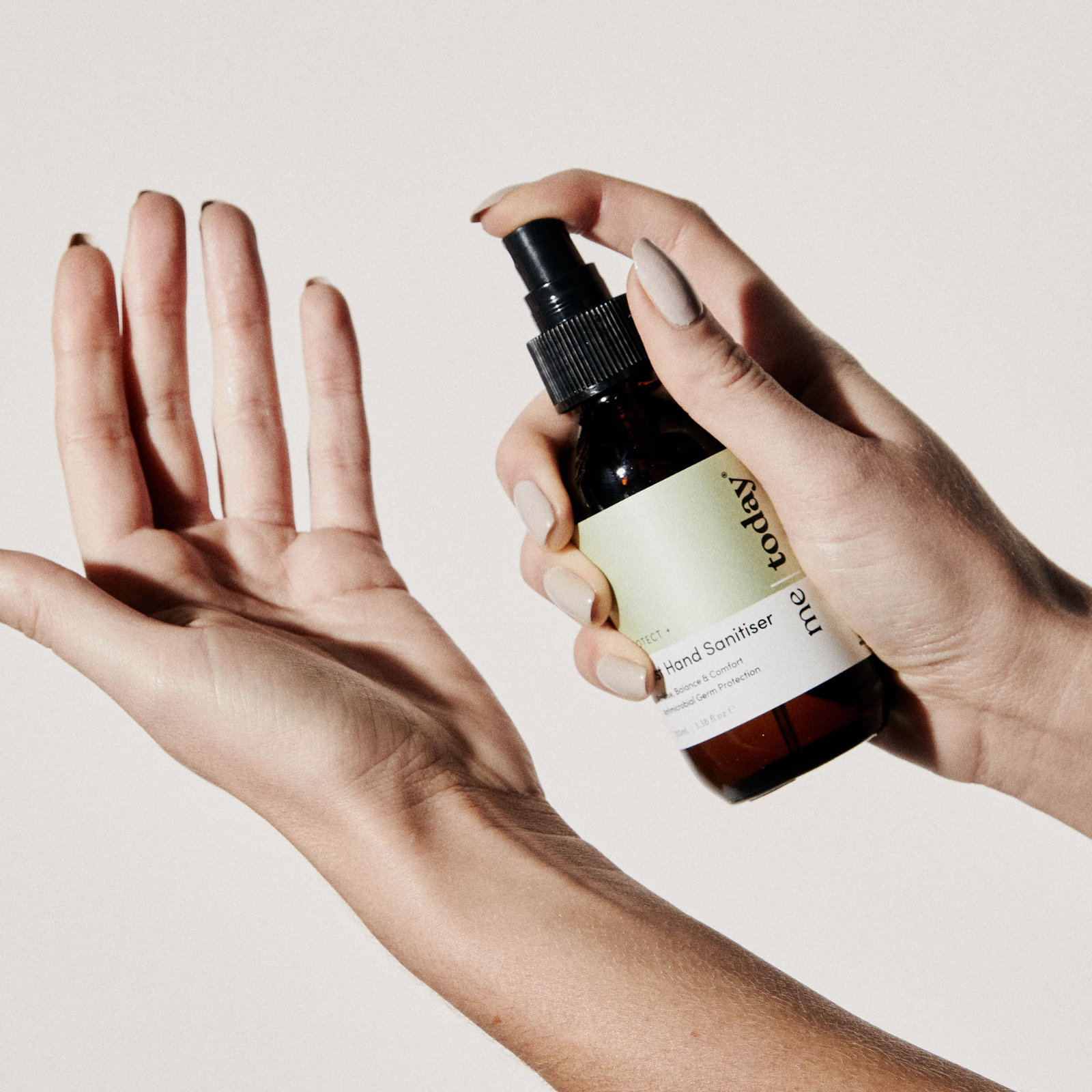 Enriched with botanicals, antioxidants & vitamins from our me | today Protect supplement blended specially for your skin, this Mist Hand Sanitiser is a gentle alcohol-free mist that is safe, easy to apply & rinse-free. Antimicrobial benzalkonium chloride protects your skin from germs, leaving your hands soothed and sanitised.